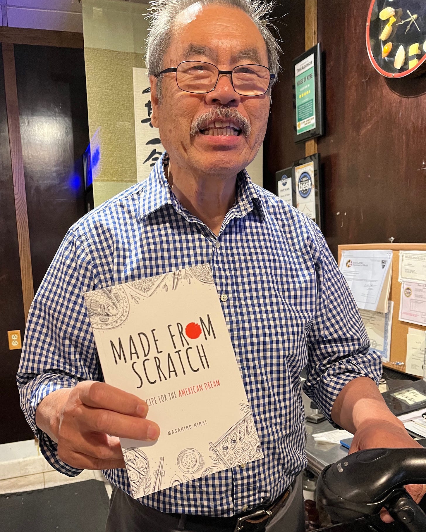 After one of my long days, I wanted to go out and have dinner and realized that the House of Kobe was close by. My friend Massey who had opened an Hibachi Japanese restaurant years ago was there and gave me a copy of his new book. I found out that his Korean wife Jun had been a popular singer before that. She always enjoyed our Korean children.