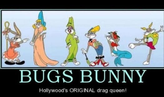 So my take away from all of this is it’s ok for folks in the south to “groom” their children with an actual crossdressing experience…but it’s not ok for a drag queen to read a book to kids. I’m totally befuddled by this logic…what would Bugs think ?
