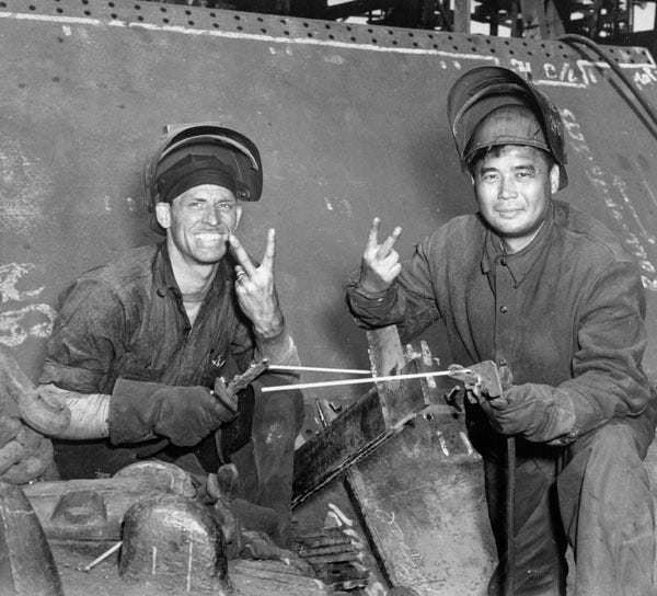 Building big metal ships, was no longer just white mans work. Necessity was the mother of invention.