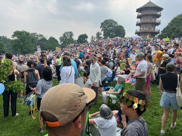 Yesterday we turned out on that same ridge in Baltimore to join millions of other Americans across the country to protest what is happening in Washington at the White House with the capitulation of Congress in a massive No Kings protest.