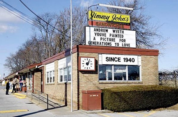 As we got closer to Valley Forge and to Philly, the Harris signs took over again. Over the past 5-6 days we ate, breakfast, lunch and dinner in a wide variety of places…from really basic, but VERY good like this Jimmy Johns to a Texas Roadhouse and a Ruths Chris.