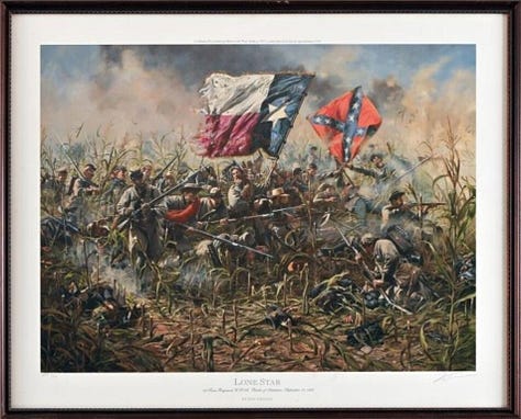 And...the conversations among the Confederate soldiers - denying that slavery was the the issue being fought about rang bells in my head. Those people had children who had children and passed on the same fantasies and philosophies - and here we are. "We was just faitin' for our raihts!"