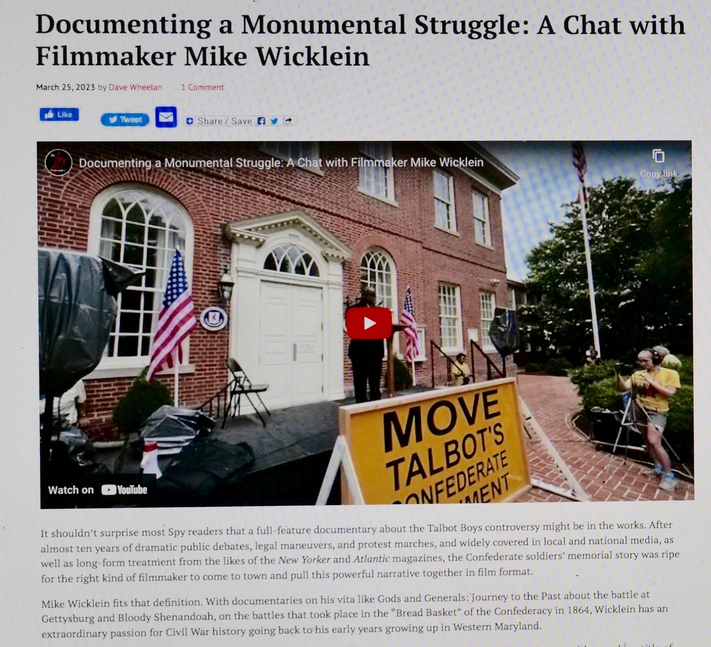 An interview I did with the Talbot Spy about our Monumental Struggle documentary project was published yesterday. David the interviewer did a wonderful editing job with my extended and sometimes rambling answers to his well thought out and crafted questions.