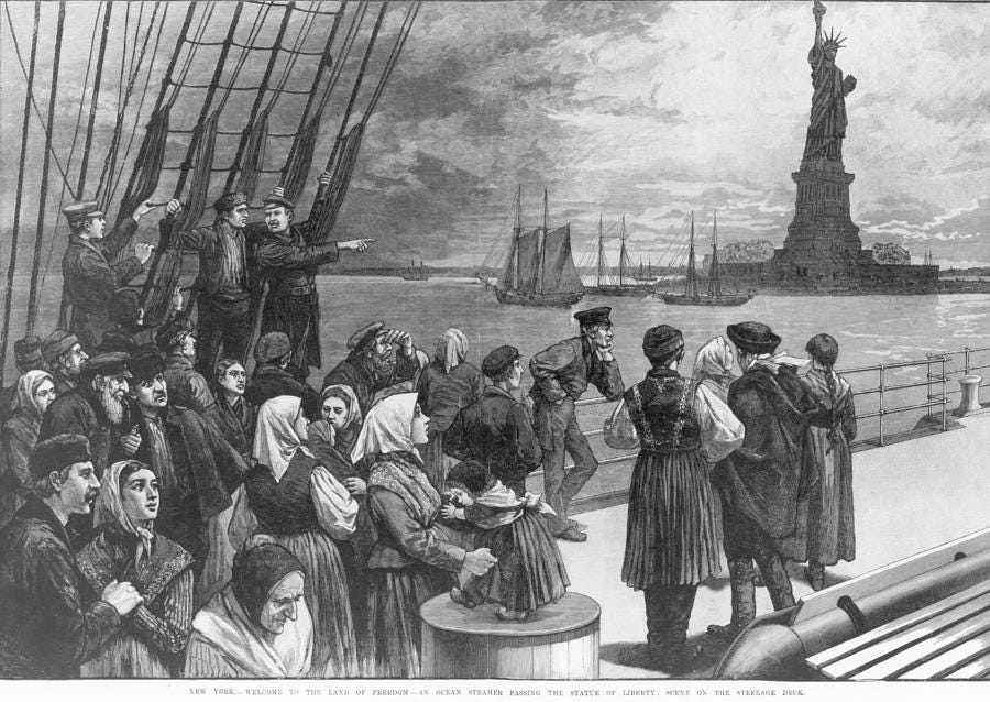 But it became a beacon to immigrants mostly from Europe who crossed the ocean and sailed into NY harbor looking for a fresh start and a better way of life for their families. Many with just the clothes on their backs.
