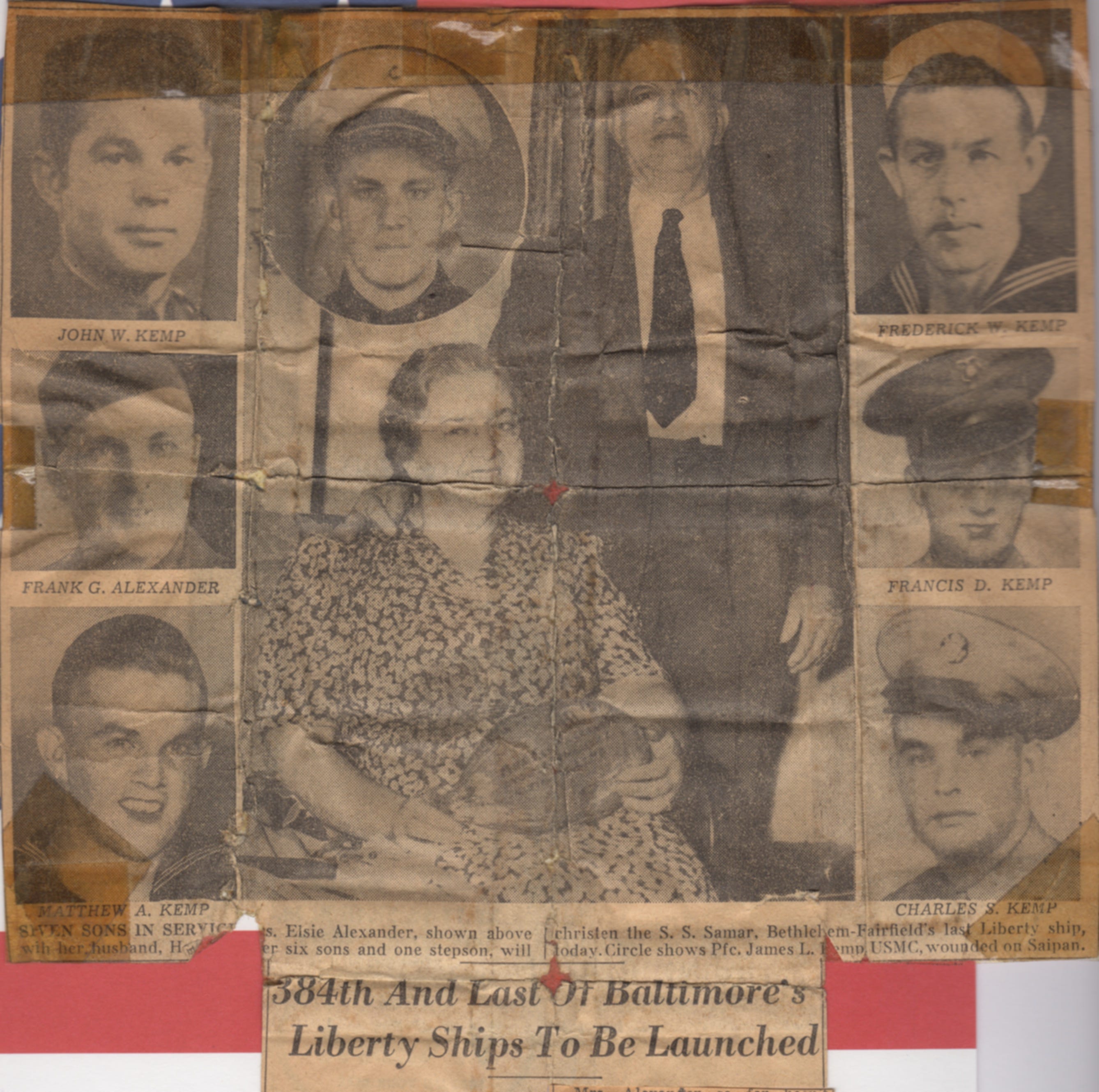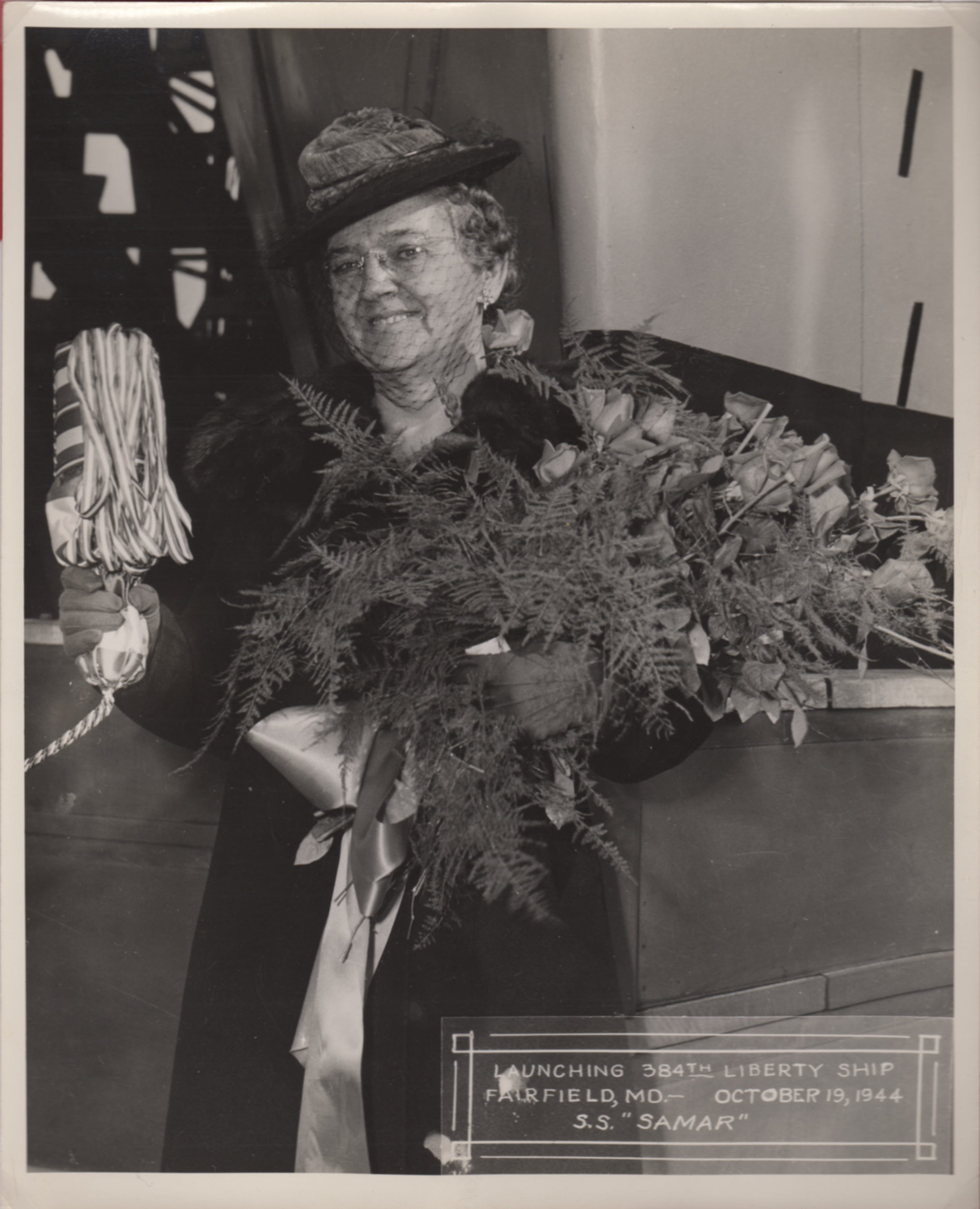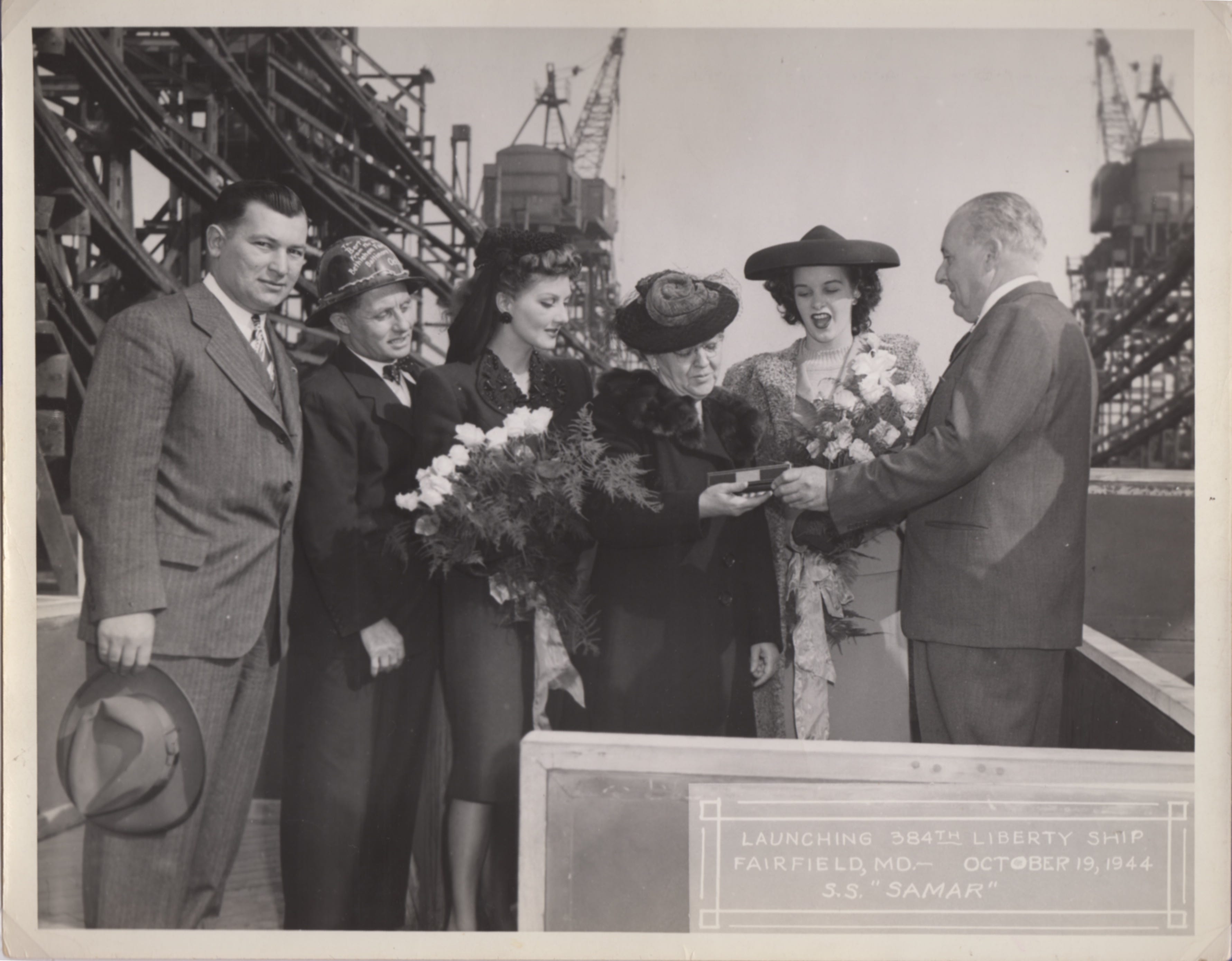 was given the honor of christening the last Liberty Ship built in the Bethlehem Fairfield Shipyard in Baltimore. The SS Samar.