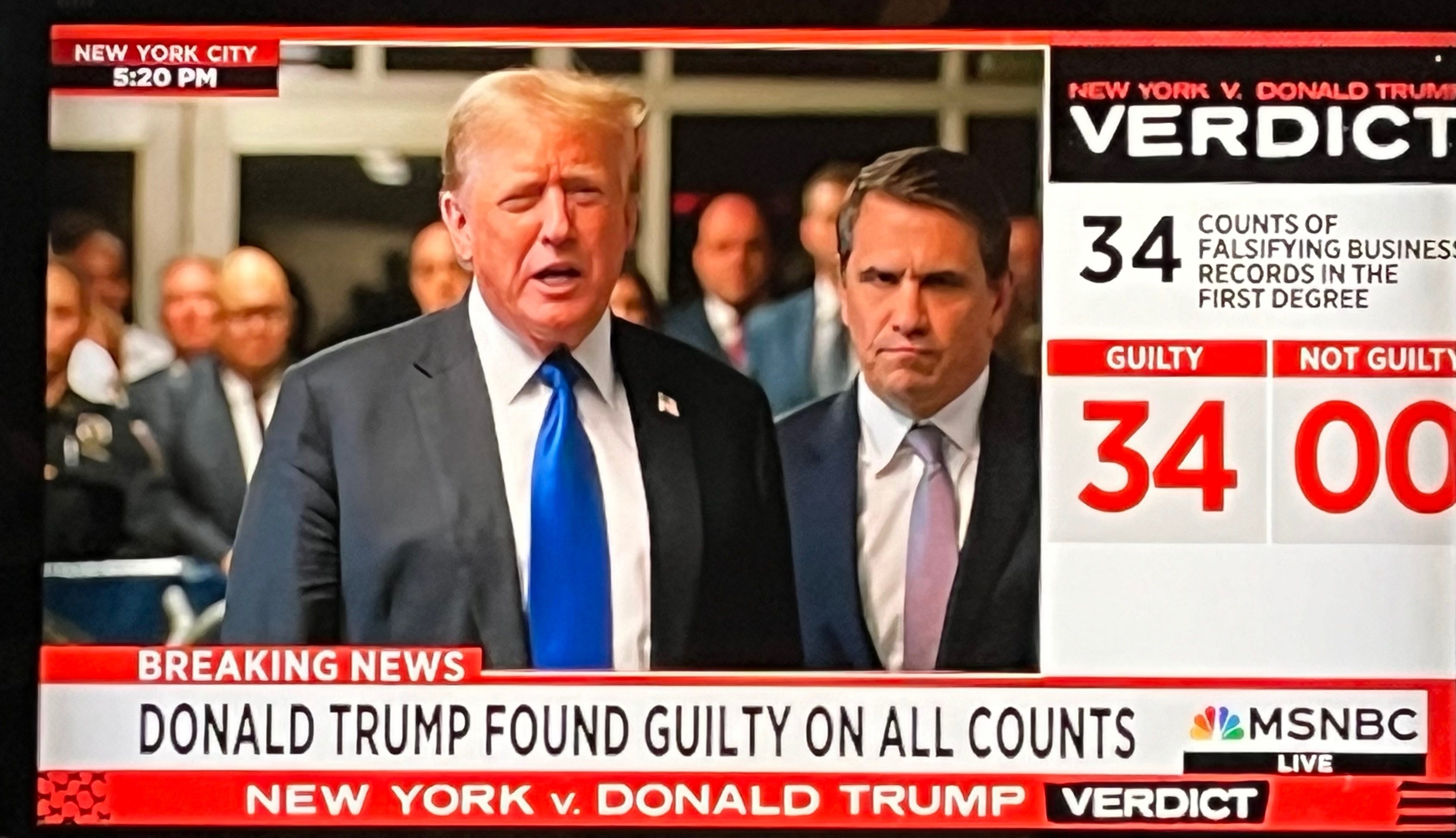 On Wednesday I was able to get our TV and internet back on line and the first news that I saw was that Donald Trump, our former President had been found guilty on all 34 counts. That’s a very historic moment in America & the World, no matter what your politics are.