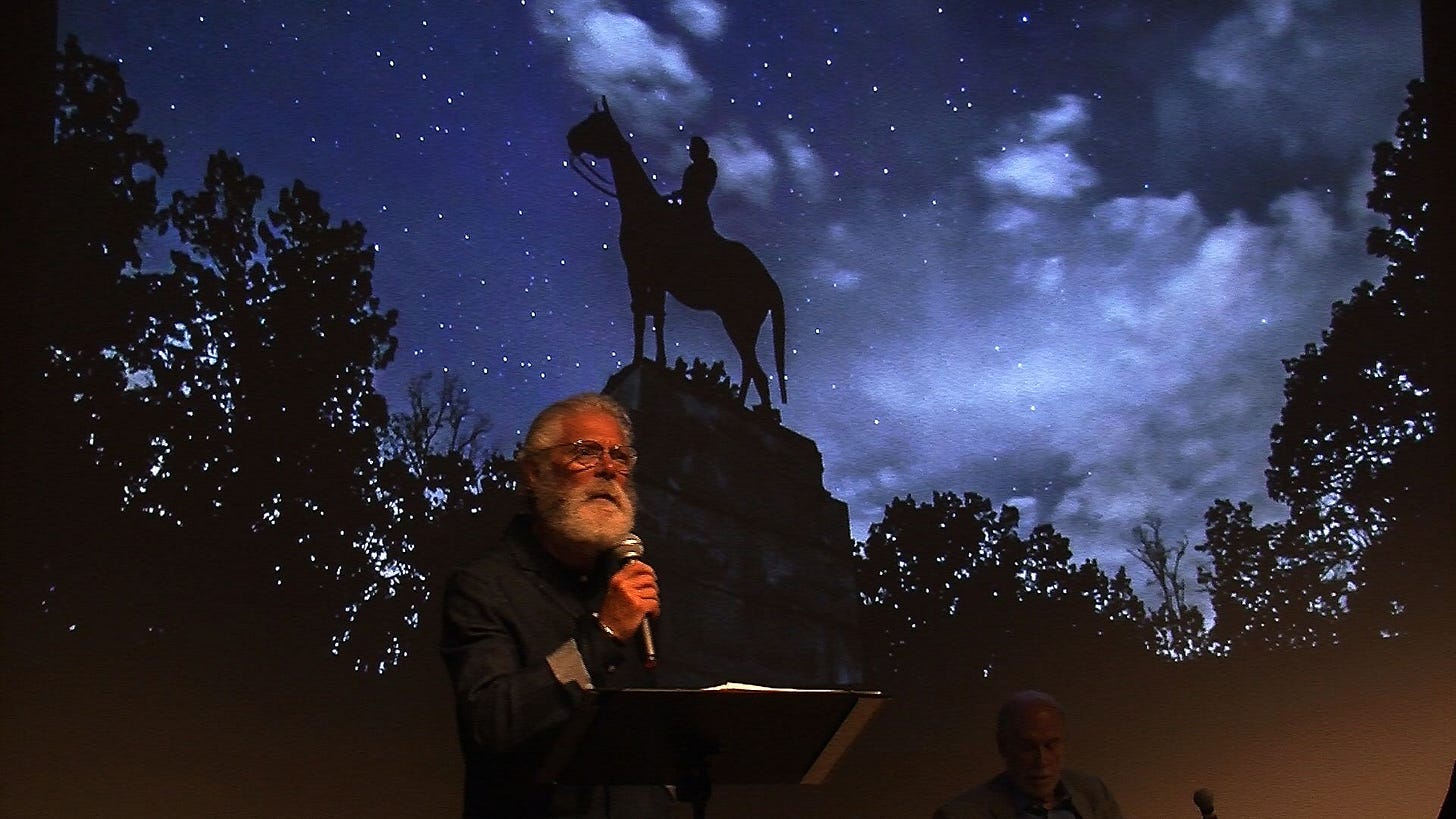 In 2001 actor Stephen Lang would portray the famed general in “Gods & Generals” seen here at a Gettysburg Foundation fundraiser in front of the RE Lee VA Monument at the Pickett’s Charge site (Another CSA General portrayed by Lang). Who by the way is NOT a Trump fan. We documented this event and Slang made his position clear in one brief remark.