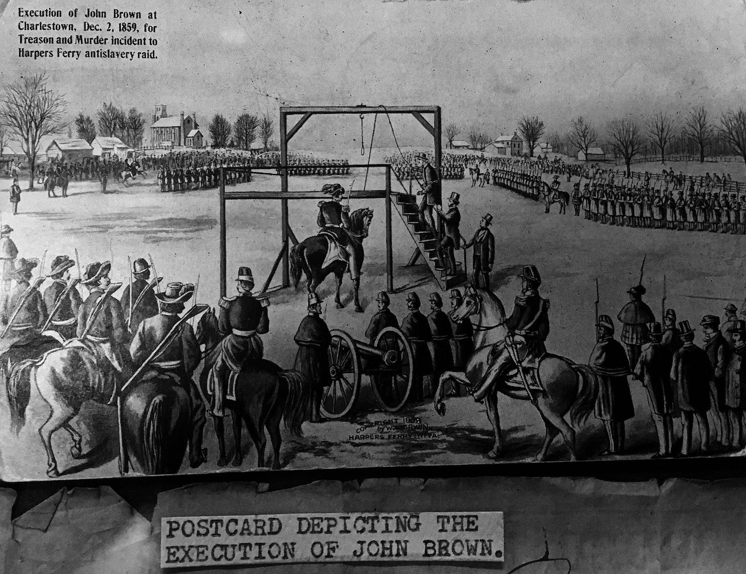 In October of 1859 RE Lee was the hero of the day capturing the treasonous Brown. 6 years later Lee was the one guilty of treason and Brown was the hero. The man who would become known as “Stonewall” Jackson in 2 years, was there with his VMI cadets to provide security.