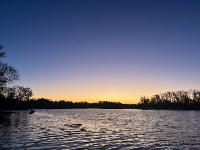 I just got back from a 40 hour road trip to the Richmond/Petersburg area. This was sunrise on the James River Wednesday morning.
