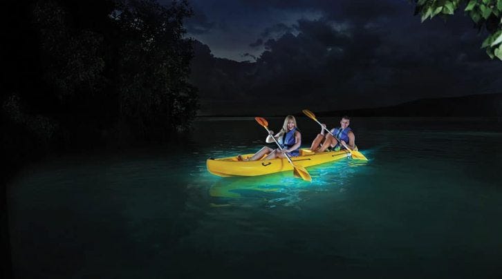 The reason it still exists there is because the water is so clean and unpolluted. What a wonderful experience, kayaking through this glowing water with more stars than I’ve ever seen at one time. You feel the size of the universe…from the little glowing one cell organisms to the far reaches of the galaxy.