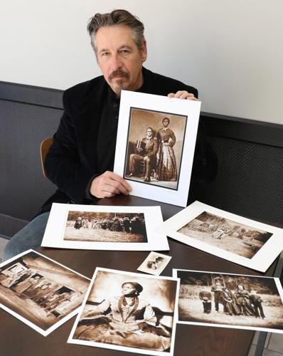 Rob became the most well know tintype artist in America through a lot of hard work and networking. He had a real horse drawn darkroom wagon that went to Civil War events (which is how I met him). He left his secure job at GM to create an authentic studio and gallery in Gettysburg. He became THE historic photographer on many historic films and TV series. Which he still does. These photos are from “Harriet”.