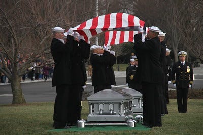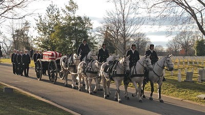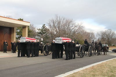 The remains of the crew were in 2 caskets which were moved to the burial site by 2 horse drawn caissons. It was VERY formal with full military honors.