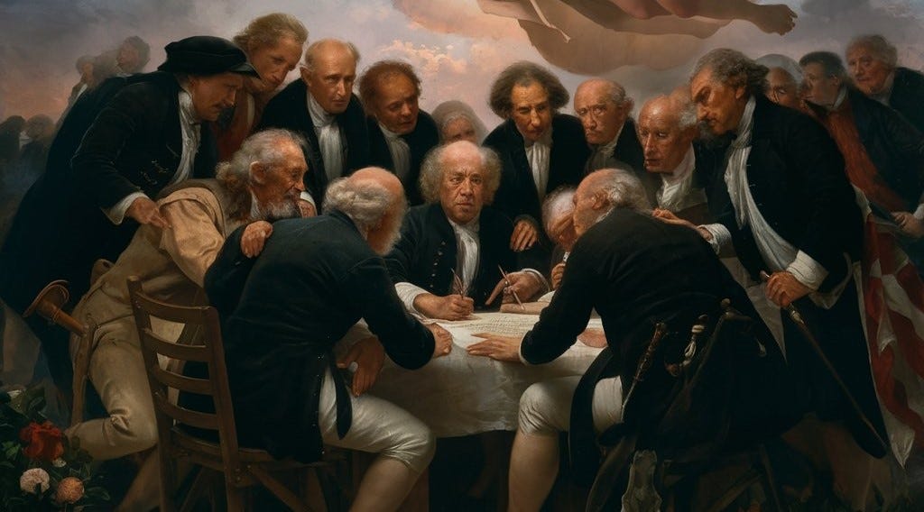 The Founders were an impressive group of white guys with property. They got us out from under a mad monarch with a LOT of help from the “average” folks who had risked everything to immigrate here and from France….along with some help from formerly enslaved and enslaved folks….and women. It was a collective effort for Freedom.