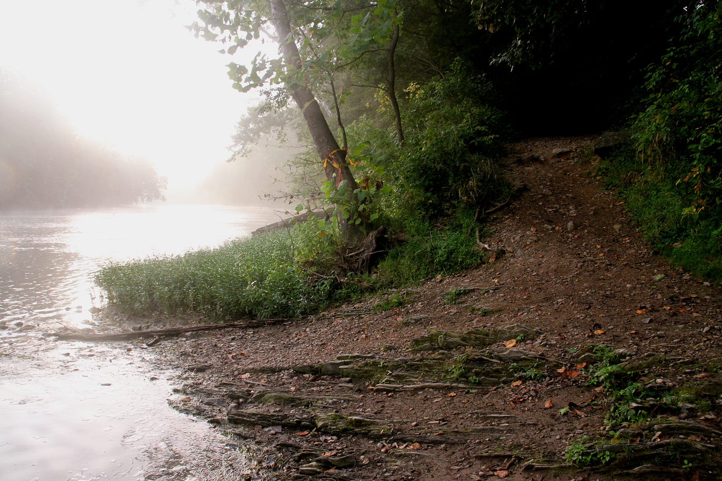 As part of my R & R I was looking through my photos yesterday and this one jumped up at me. The bright light on the river as it flows by and the darkness up the pathway into the woods.